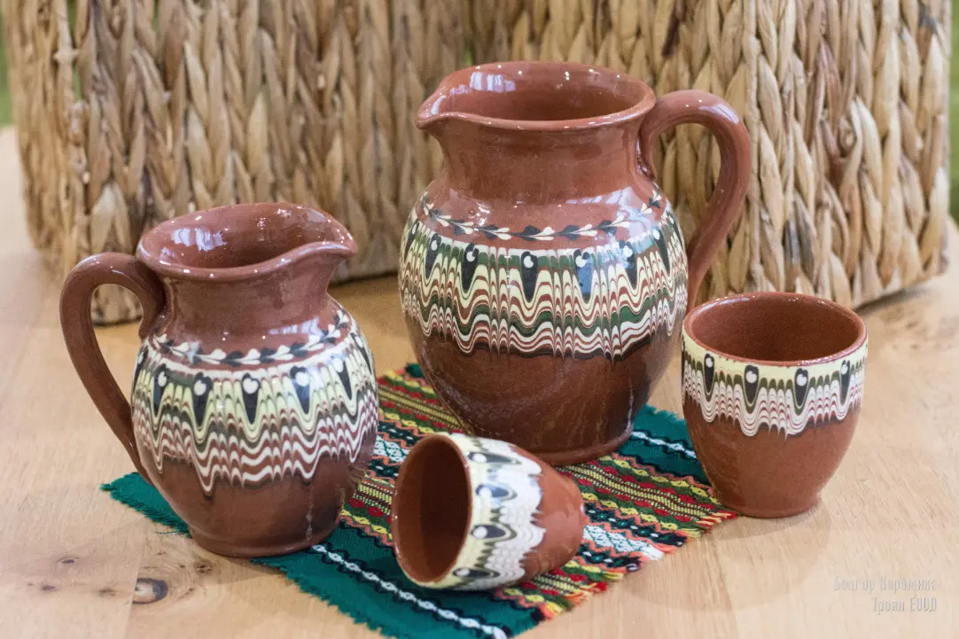 The product Ceramic Jug with Small Cups – Trojan Pattern – TK182 is part of the handmade production of Bolgar Ceramics!