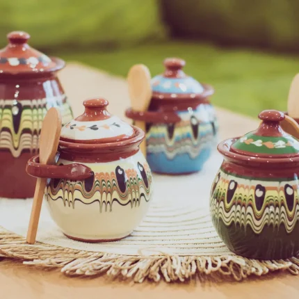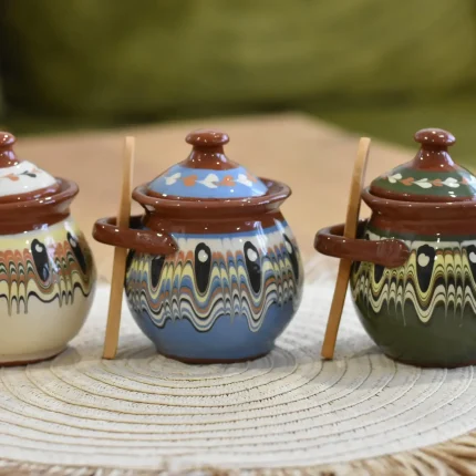 The product Ceramic Jars with Spoons – TK85 is part of the handmade production of Bolgar Ceramics!