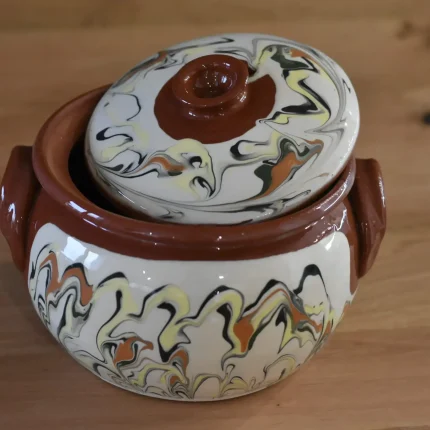 Класически гювечи за бавно готвене и сервиране директно на масата. Размери: 3, 4, 5, 6 и 7 л, както и гювечета 0,650 л за индивидуални порции. Керамиката пече равномерно, задържа топлината и запазва сочността на ястието.